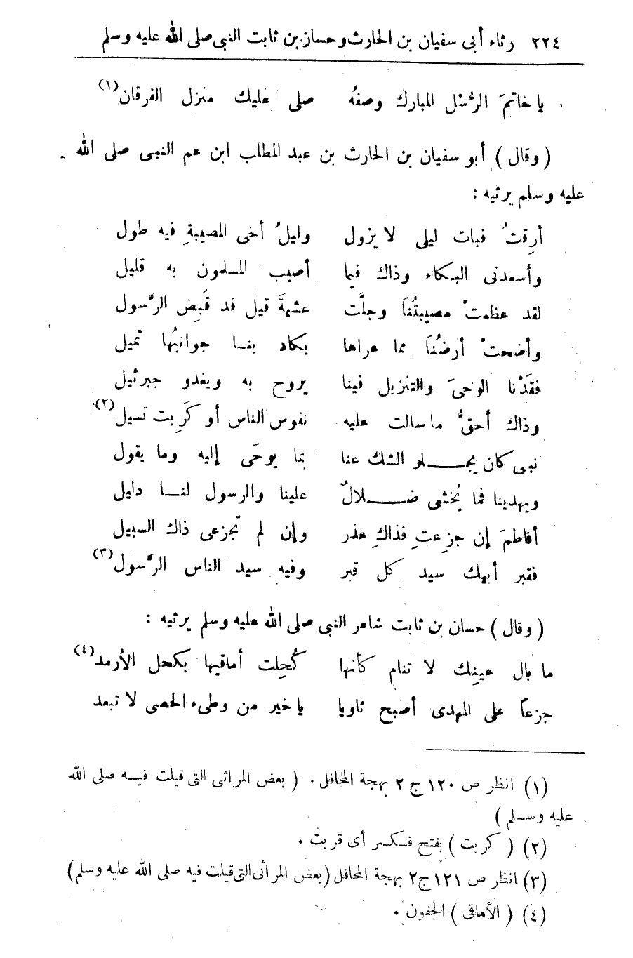 (¬1) انظر ص 120 ج 2 بهجة المحافل. (بعض المراثى التى قيلت فيه صلى الله عليه وسلم)