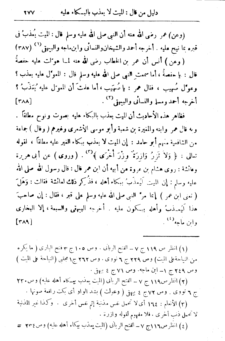(¬1) انظر ص 119 ج 7 - الفتح الربانى. وص 105 ج 3 فتح البارى (ما يكره من النياحة على الميت) وص 229 ج 6 نووى. وص 262 ج 1 مجتبى (النياحة على الميت وص 249 ج 1 - ابن ماجه وص 71 ج 4 بيهقى.