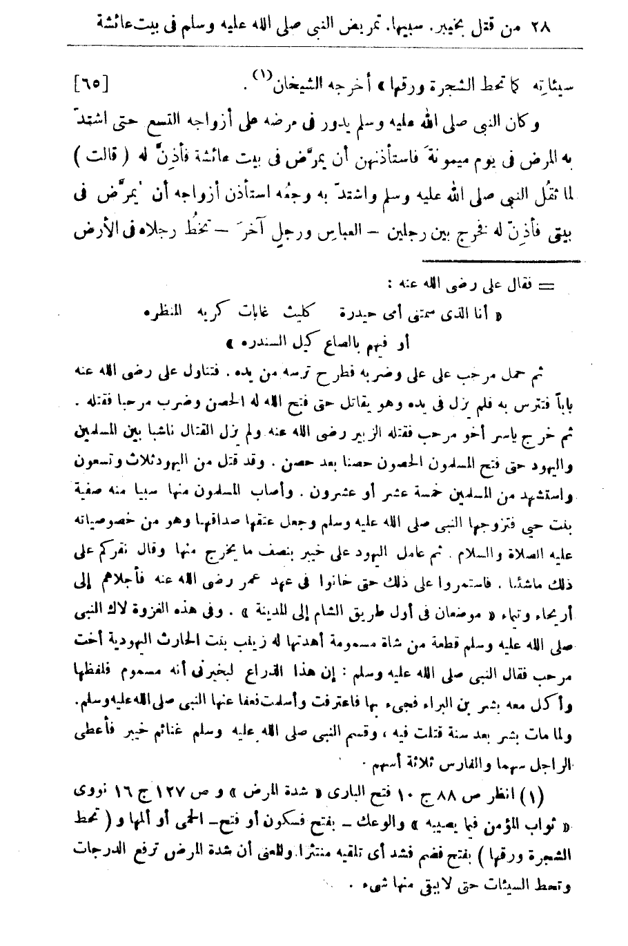 وكان النبي صلى الله عليه وسلم يدور في مرضه على أزواجه التسع حتى اشتد به المرض في يوم ميمونة فاستأذنهن أن يمرض في بيت عائشة فأذن له (قالت) لما ثقل النبي صلى الله عليه وسلم واشتد به وجعه استأذن أزواجه أن يمرض في بيتي فإذن له فخرج بين رجلين - العباس ورجل آخر - تخط رجلاه في الأرض