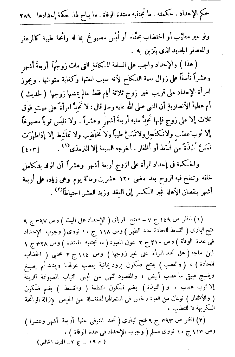 (¬2) انظر ص 149 ج 7 - الفتح الربانى (الإحداد على الميت) وص 397 ج 9 فتح البارى (القسط للحادة عند الطهر) وص 118 ج 10 نووى (وجوب الإحداد فى هدة الوفاة) وص 210 ج 2 عون المعبود (ما تجتنبيه المعتدة) وص 328 ج 1 ابن ماجه (هل تحد المرأة على غير زوجها) وص 114 ج 2 مجتبى (الخضاب للحادة)، (العصب) بفتح فسكون برود يمانية يعصب غزلها ويشد ثم يصبغ إلا ثوب عصب. و (النبذة) بضم فسكون القطعة (والقسط) بضم فسكون (والأظفار) نوعان من العود رخص فى استعمالها للمغتسلة من الحيض لإزالة الرائحة الكريهة لا للتطيب.