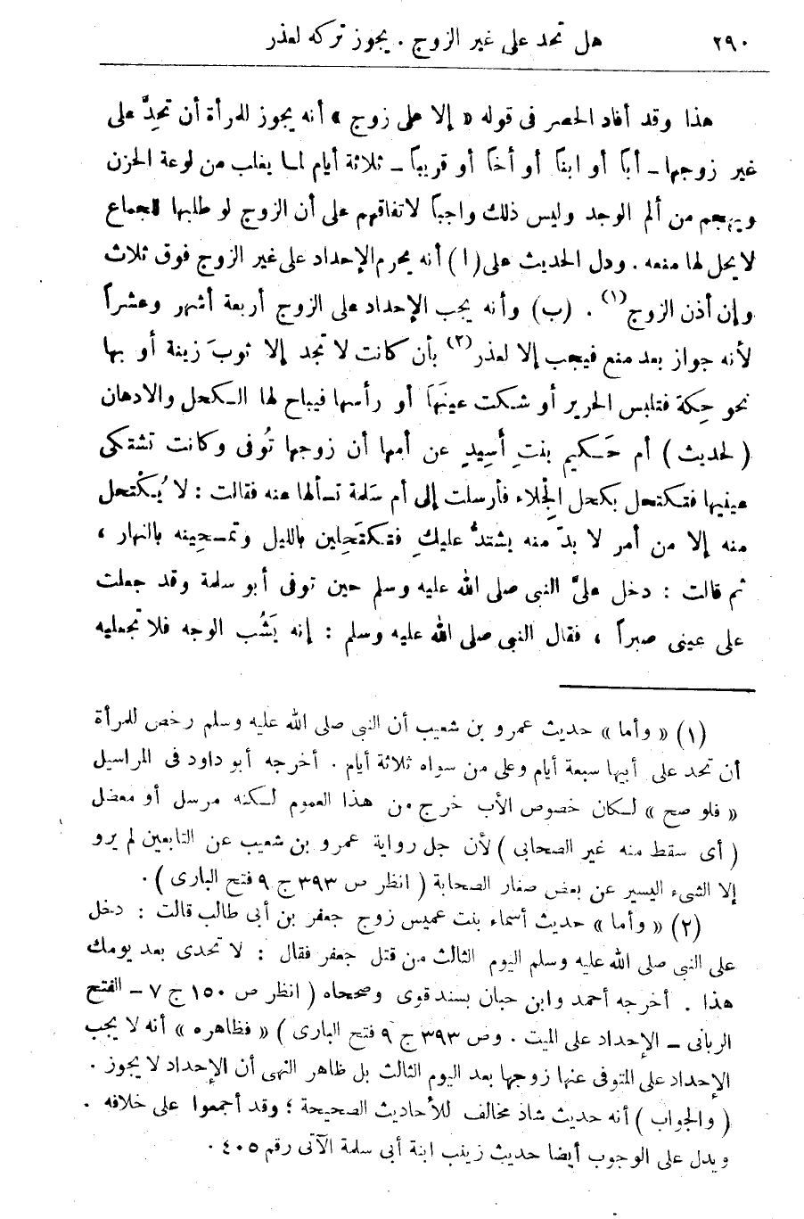 (¬1) انظر ص 393 ج 9 فتح البارى (تحد المتوفى عنها اربعة أشهر وعشرا) وص 113 ج 10 نووى مسلم (وجوب الإحداد فى عدة الوفاة).