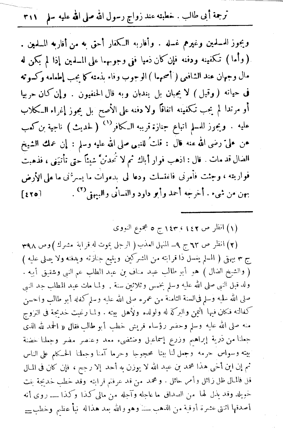 (¬2) انظر ص 63 ج 9 - المنهل العذب (الرجل يموت له قرابة مشرك) وص 398 ج 3 بيهقى (المسلم ينسل ذا قرابته من المشركين ويتبع جنازته ويدفنه ولا يصلى عليه) (والشيخ الضال) هو أبو طالب عبد مناف بن عبد المطلب عم النبي وشقيق ابيه.