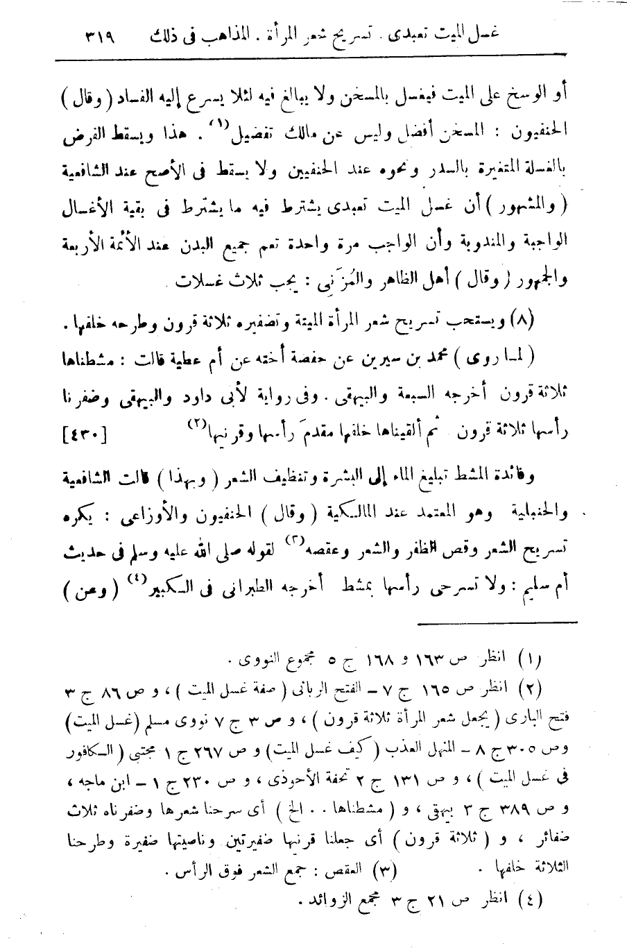 (¬2) انظر ص 165 ج 7 - الفتح الرباني (صفة غسل الميت)، وص 86 ج 3 فتح الباري (يجعل شعر المرأة ثلاثة قرون)، وص 3 ج 7 نووي مسلم (غسل الميت) وص 305 ج 8 - المنهل العذب (كيف غسل الميت) وص 267 ج 1 مجتبى (الكافور في غسل الميت)، وص 131 ج 2 تحفة الاحوذى، وص 230 ج 1 - ابن ماجه، وص 389 ج 3 بيهقى، و (مشطناها ... الخ) اى سرحنا شعرها وضفرناه ثلاث ضفائر، و (ثلاثة قرون) أي جعلنا قرنها ضفيرتين وناصيتها ضفيرة وطرحنا الثلاثة خلفها.