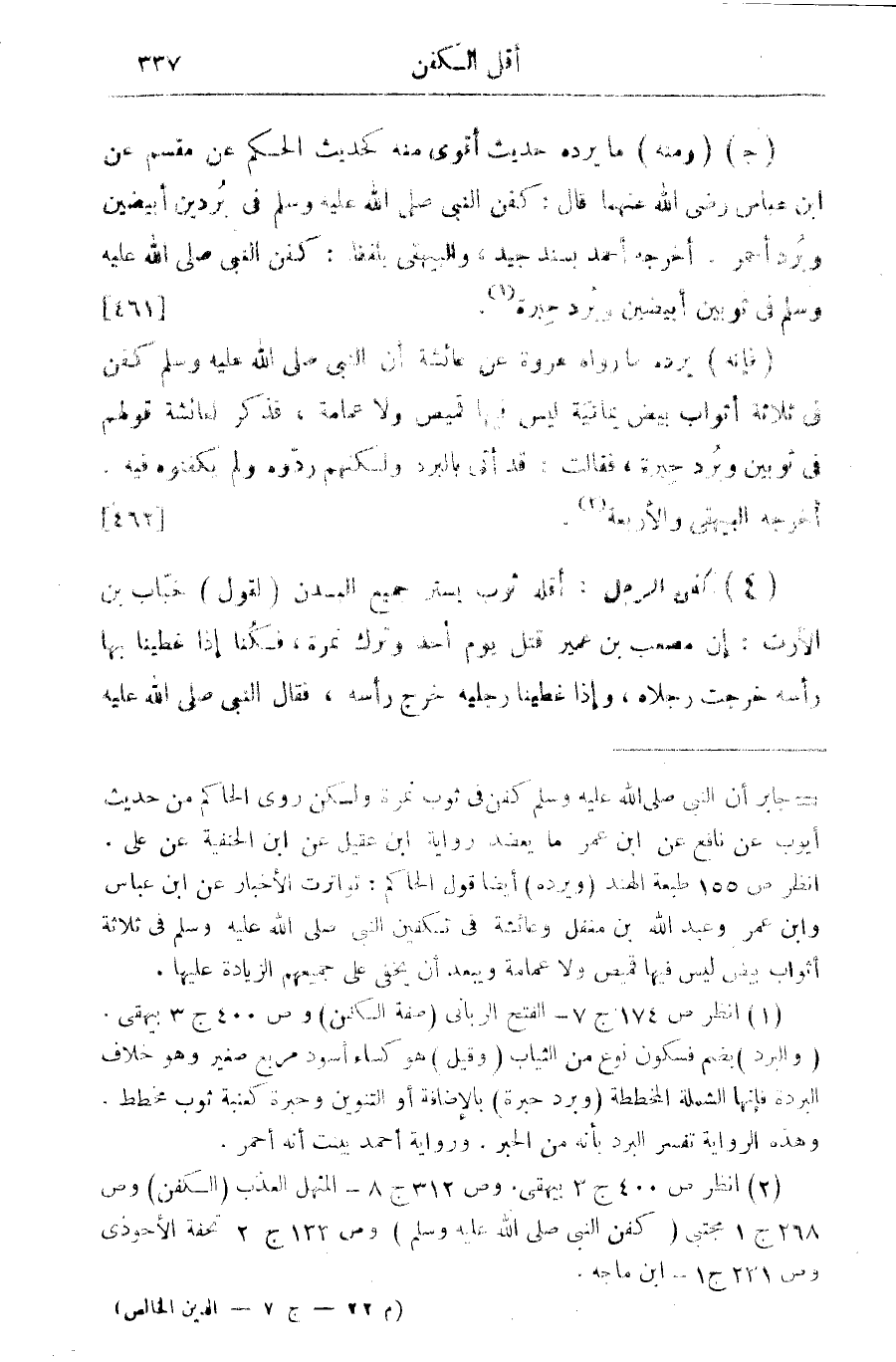 (¬2) انظر ص 400 ج 3 بيهقى. وص 312 ج 8 - المنهل العذب (الكفن) وص 268 ج 1 مجتبى (كفن النبى صلى الله عليه وسلم) وص 133 ج 2 تحفة الأحوذى وص 231 ج 1 - ابن ماجه.