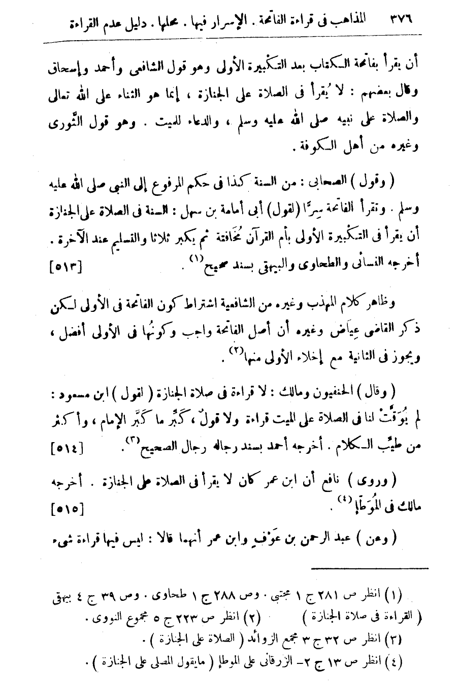 (¬1) انظر ص 281 ج 1 مجتبى. وص 288 ج 1 طحاوى. وص 39 ج 4 بيهقى (القراءة فى صلاة الجنازة).