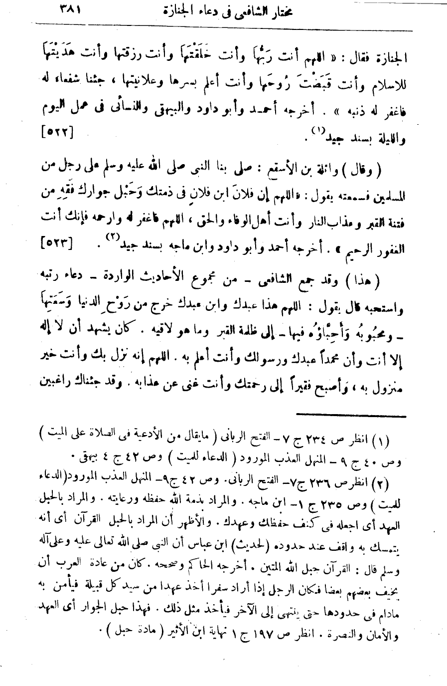 (¬1) انظر ص 234 ج 7 - الفتح الربائى (ما يقال من الادعيه في الصلاة على الميت) وص 40 ج 9 - المنهل العذب المورود (لدعاء للميت) وص 42 ج 4 بيهقى.