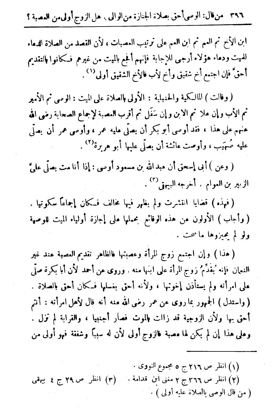 (¬3) انظر ص 29 ج 4 بيهقى (من قال الوصى بالصلاة عليه أولى).