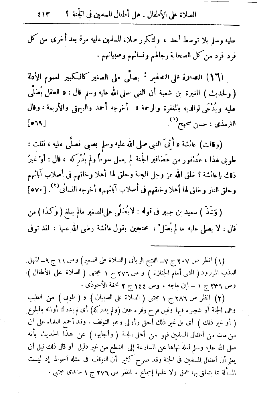 (¬1) انظر ص 207 - الفتح الربانى (الصلاة على الصغير) وص 11 ج 9 - المنهل العذب المورود (المشى أمام الجنازة) وص 276 ج 1 مجتبى (الصلاة على الأطفال) وص 236 ج 1 - ابن ماجه. وص 144 ج 2 تحفة الأحوذى.