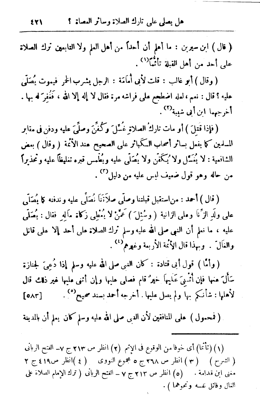 (¬5) انظر ص 213 ج 7 - الفتح الربانى (ترك الإمام الصلاة على الغال وقائل نفسه ونحوهما).