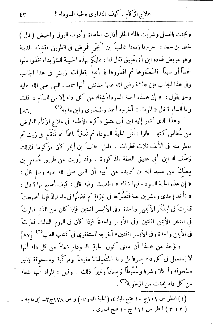 (¬2) انظر ص 111 ج 10 فتح الباري (الحبة السوداء 9 وص 178 ج 2 - ابن ماجه.