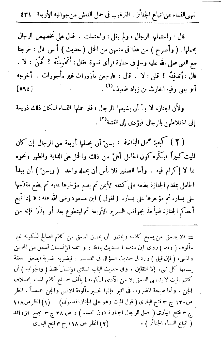 (¬1) انظر ص 118 ج 3 فتح البارى (حمل الرجال الجنازة دون النساء) وص 28 ج 3 مجمع الزوائد - (اتباع النساء الجنائز).