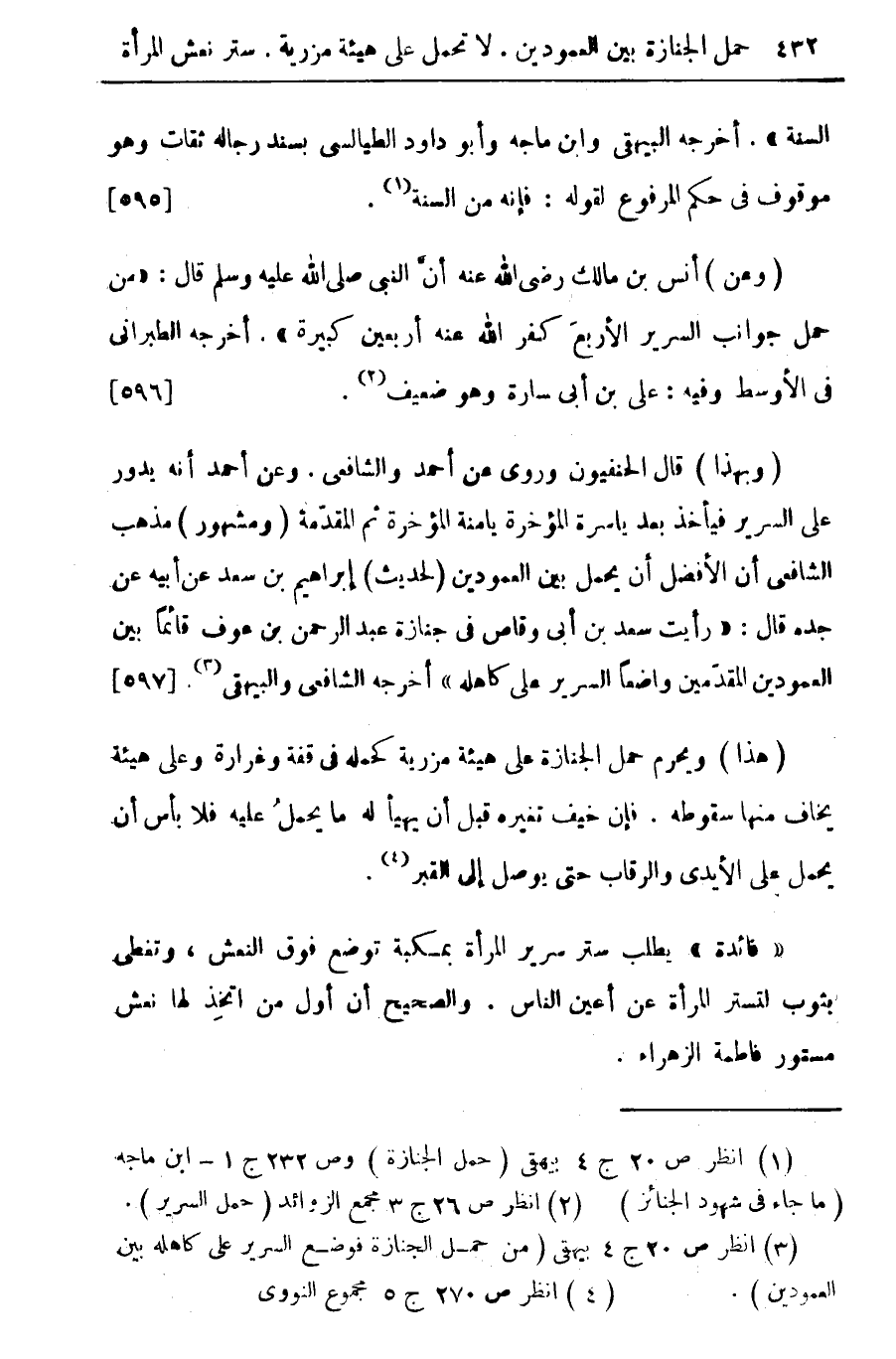 (¬3) انظر ص 20 ج 4 بيهقى (من حمل الجنازة فوضع السرير على كاهله بين العمودين).