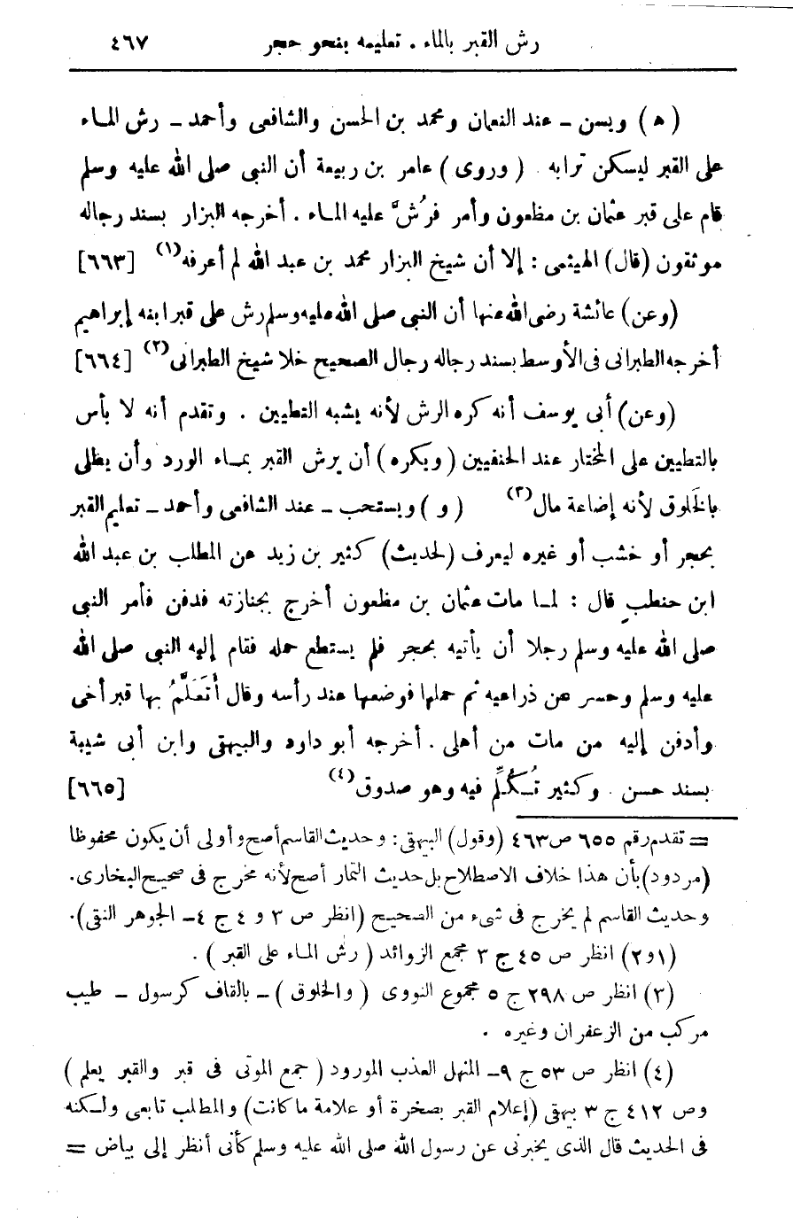 (¬2) انظر ص 45 ج 3 مجمع الزوائد (رش الماء على القبر).