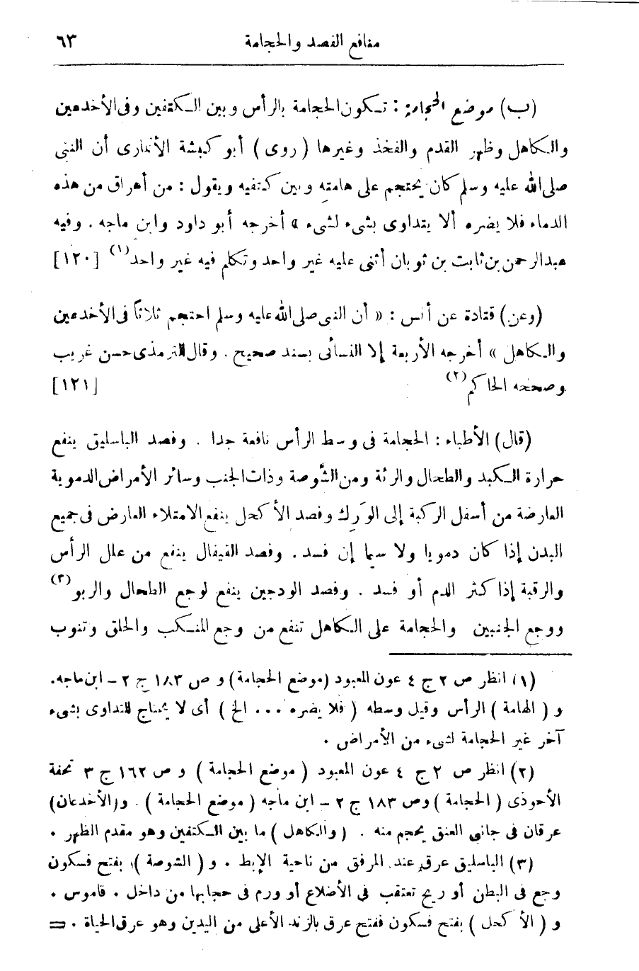 (¬2) انظر ص 2 ج 4 عون المعبود (موضع الحجامة) وص 162 ج 3 تحفة الأحوذى (الحجامة) وص 183 ج 2 - ابن ماجه (موضع الحجامة) و (الأخدعان) عرقان فى جانبى العنق يحجم منه (والكاهل) ما بين الكتفين وهو مقدم الظهر.