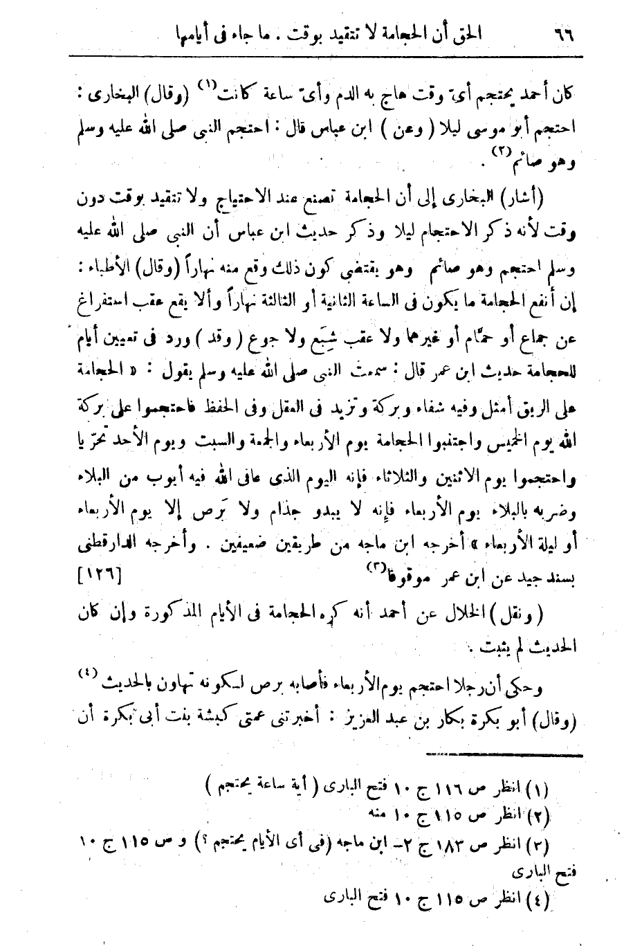 (¬1) (انظر ص 116 ج 10 فتح البارى 0 اية ساعة يحتجم)