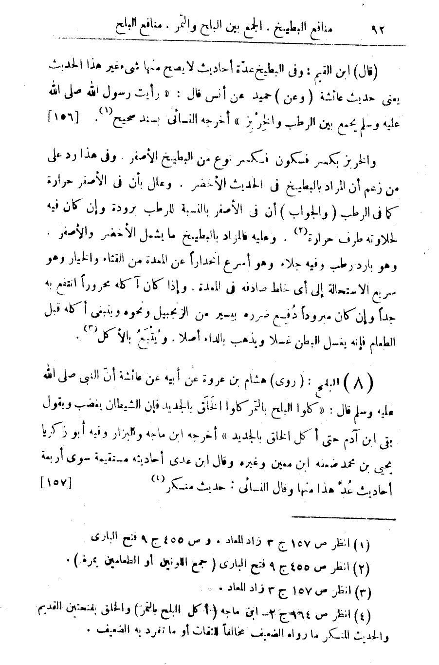 (¬2) انظر ص 455 ج 9 فتح البارى (جمع اللونين أو الطعامين بمرة) وص 38 ج 5 مجمع الزوائد (البطيخ والرطب)