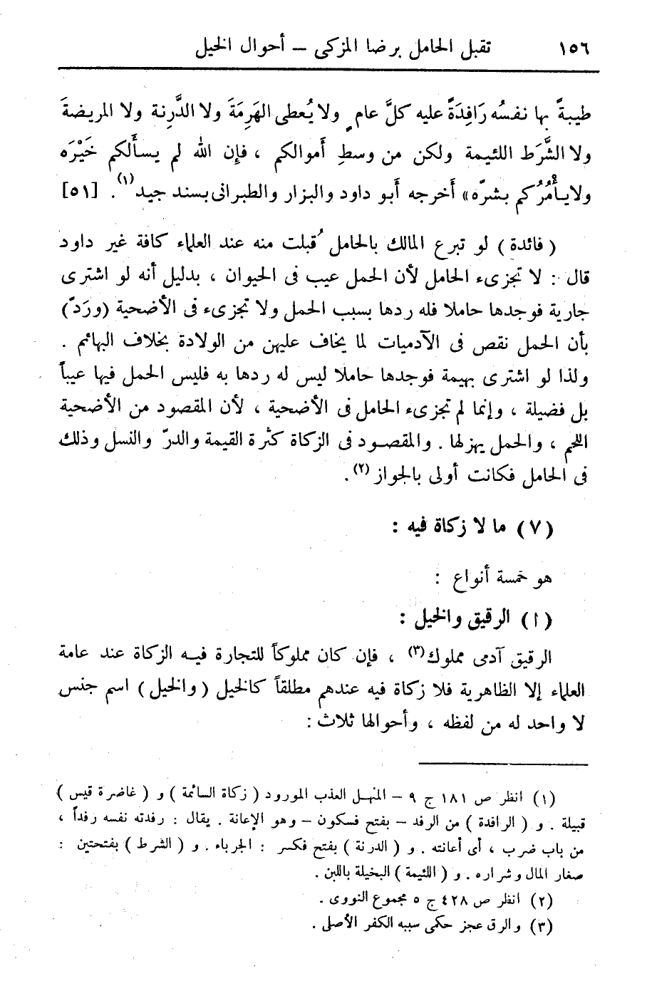 طيبة بها نفسه رافدة عليه كل عام ولا يعطي الهرمة ولا الدرنة ولا المريضة ولا الشرط اللئيمة ولكن من وسط أموالك، فإن الله لم يسألكم خيره ولا يأمركم بشره" أخرجه أبو داود والبزار والطبراني بسند جيد (¬1). {51}