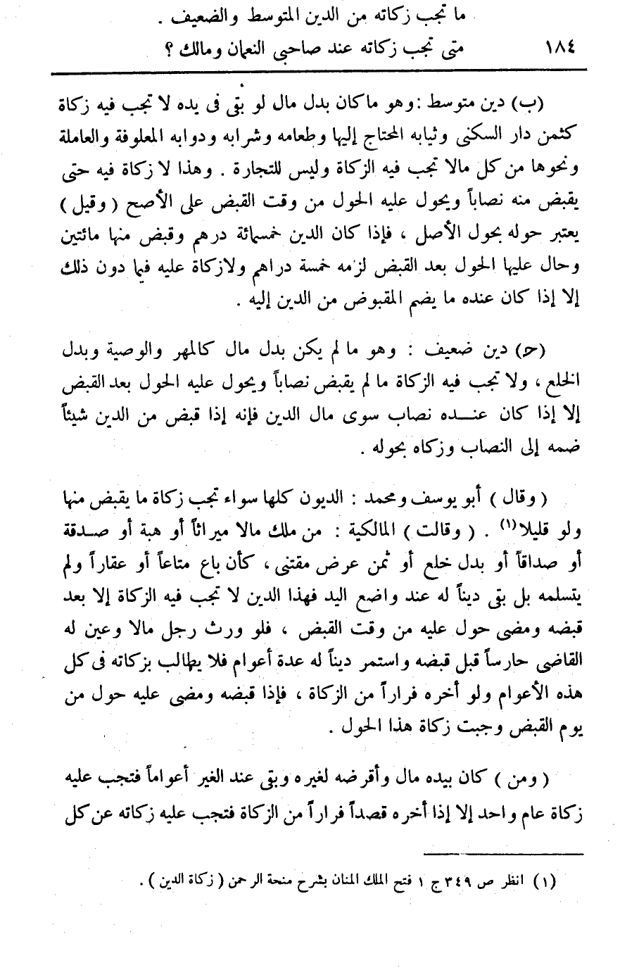 (¬1) انظر ص 349 ج 1 فتح الملك المنان بشرح منحة الرحمن (زكاة الدين).