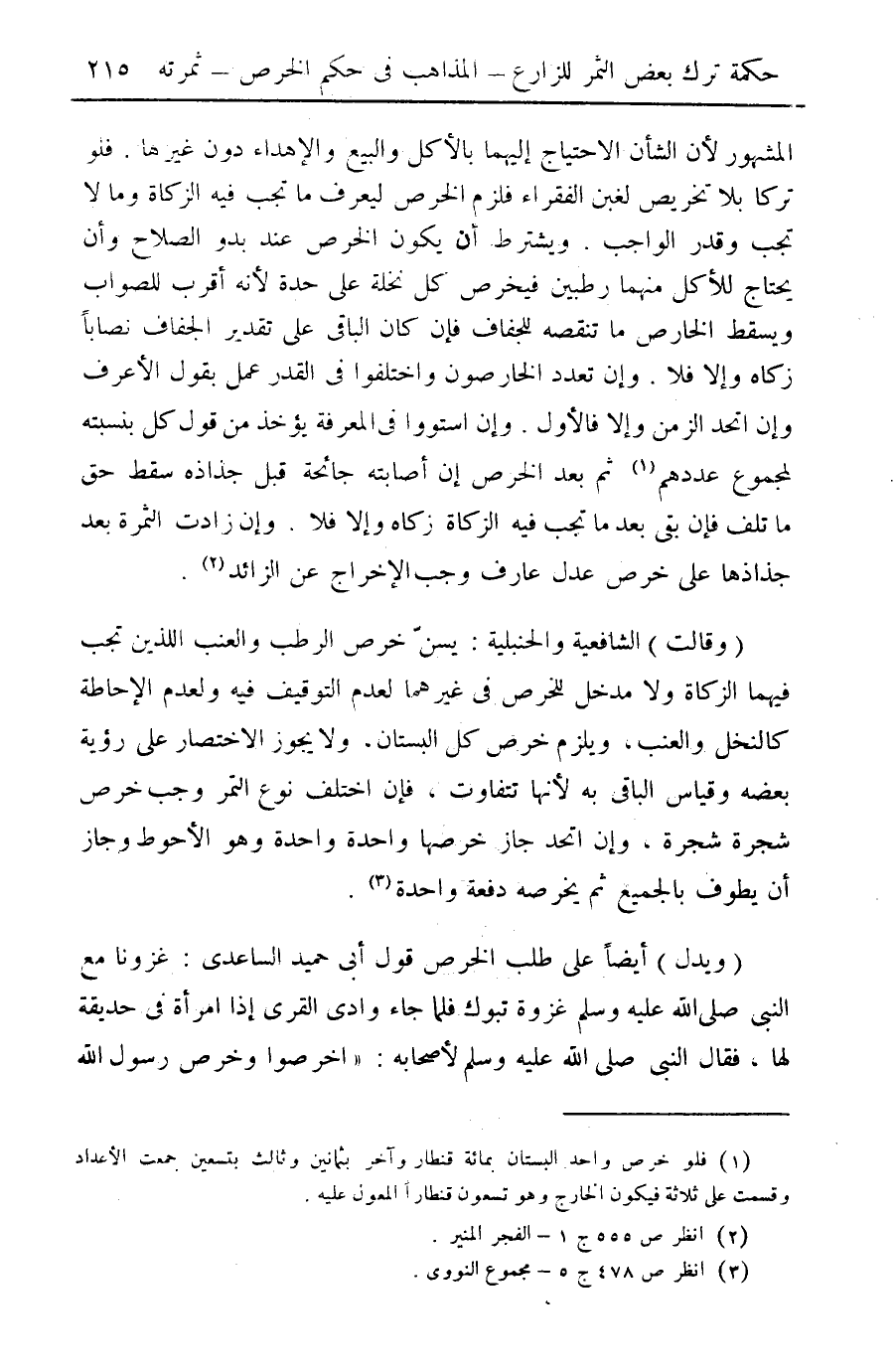 (¬1) فلو خرص واحد البستان بمائة قنطار وآخر بثمانين وثالث بتسعين جمعت الأعداد وقسمت على ثلاثة فيكون الخارج وهو تسعون قنطارا المعول عليه.