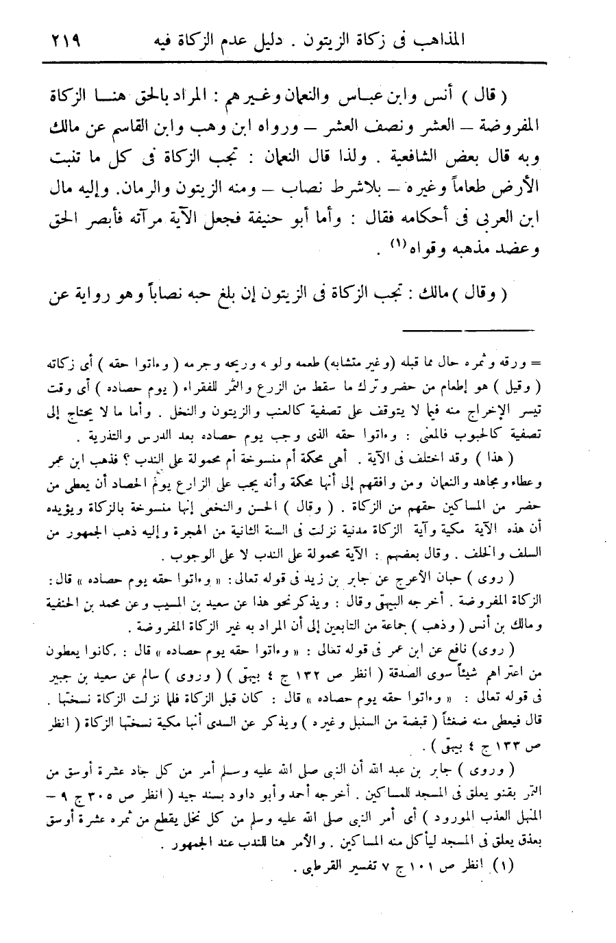 ... (روى) حبان الأعرج عن جابر بن زيد في قوله تعالى: "وءاتوا حقه يوم حصاده" قال: الزكاة المفروضة. أخرجه البيهقي وقال: ويذكر نحو هذا عن سعيد بن المسيب وعن محمد بن الحنفية ومالك بن أنس (وذهب) جماعة من التابعين إلى أن المراد به بغير الزكاة المفروضة.