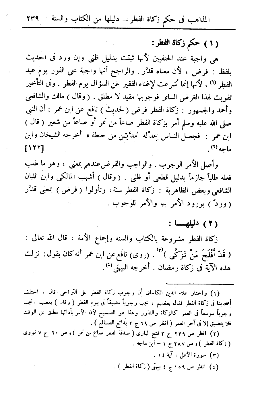(¬2) أنظر ص 239 ج 3 فتح الباري (صدقه الفطر صاعا من تمر) وص 60 ج 7 نووى (زكاة الفطر) وص 287 ج 1 - ابن ماجة.