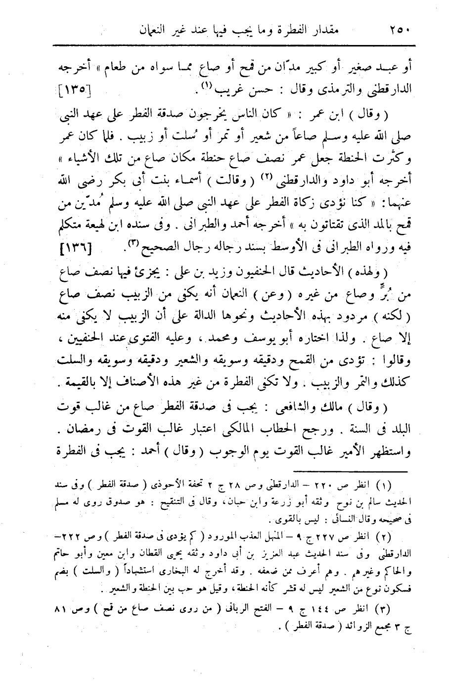 (¬1) انظر ص 220 - الدارقطني وص 28 ج 2 تحفة الأحوذى (صدقة الفطر) وفي سند الحديث سالم بن نوح وثقه أبو زرعة وابن حبان، وقال في التنقيح: هو صدوق روى له مسلم في صحيحه وقال النسائي: ليس بالقوى.