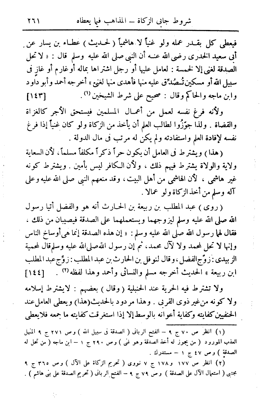 (¬2) انظر ص 177 و 178 ج 7 نووي (تحريم الزكاة على الآل) وص 365 ج 9 مجتبى (استعمال الآل على الصدقة) وص 79 ج 9 - الفتح الرباني (تحريم الصدقة على بني هاشم).