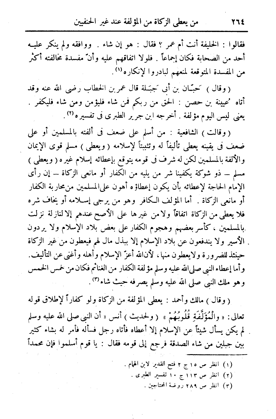 (وقال) حبان بن أبي جبلة قال عمر بن الخطاب رضي الله عنه وقد أتاه عيينه بن حصن: الحق من ربكم فمن شاء فليؤمن ومن شاء فليكفر. يعني ليس اليوم مؤلفة. أخرجه ابن جرير الطبري في تفسيره (¬2).