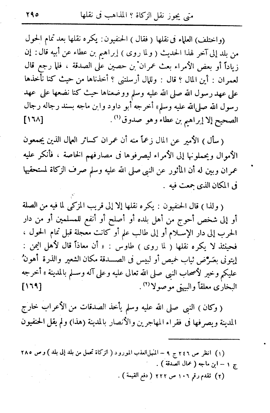(¬1) انظر ص 246 ج 9 - المنهل العذب المورود (الزكاة تحمل من بلد إلى بلد) وص 285 ج 1 - ابن ماجه (عمال الصدقة).