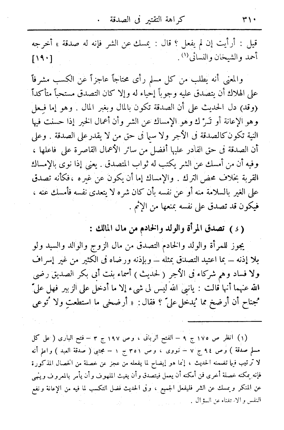 قيل: أرأيت إن لم يفعل؟ قال: يمسك عن الشر فإنه له صدقة" أخرجه أحمد والشيخان والنسائي (¬1). {190}