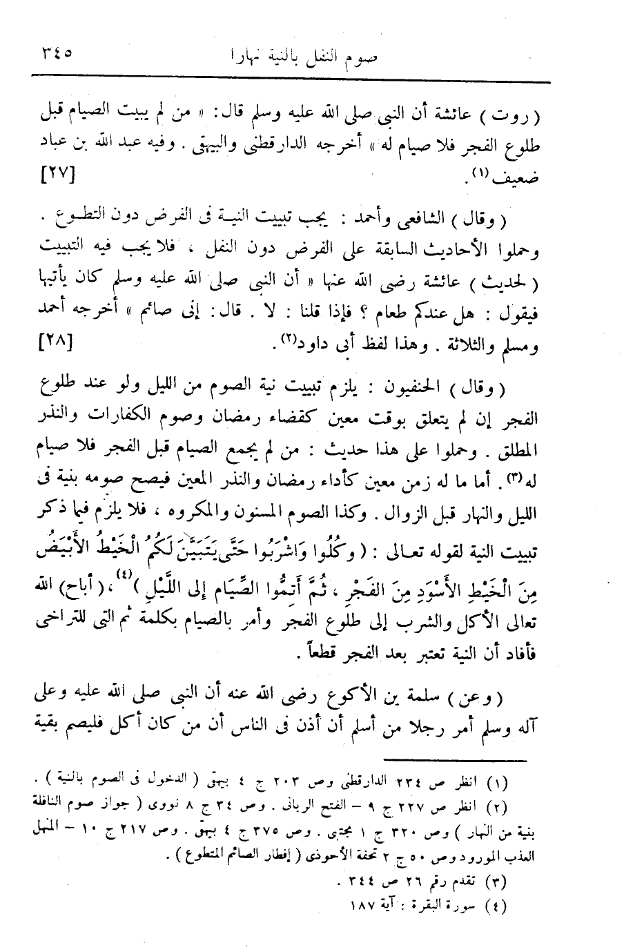 (¬1) انظر ص 234 الدارقطني وص 203 ج 4 بيهقي (الدخول في الصوم بالنية).