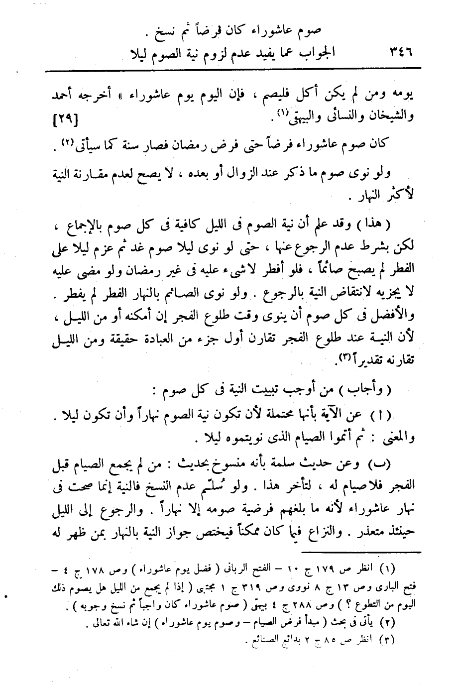 (¬1) انظر ص 179 ج 10 - الفتح الرباني (فضل يوم عاشوراء) وص 178 ج 4 - فتح الباري وص 13 ج 8 نووي وص 319 ج 1 مجتبي (إذا لم يجمع من الليل هل يصوم ذلك اليوم من التطوع؟ ) وص 288 ج 4 بيهقي (صوم عاشوراء كان واجباً ثم نسخ وجوبه).