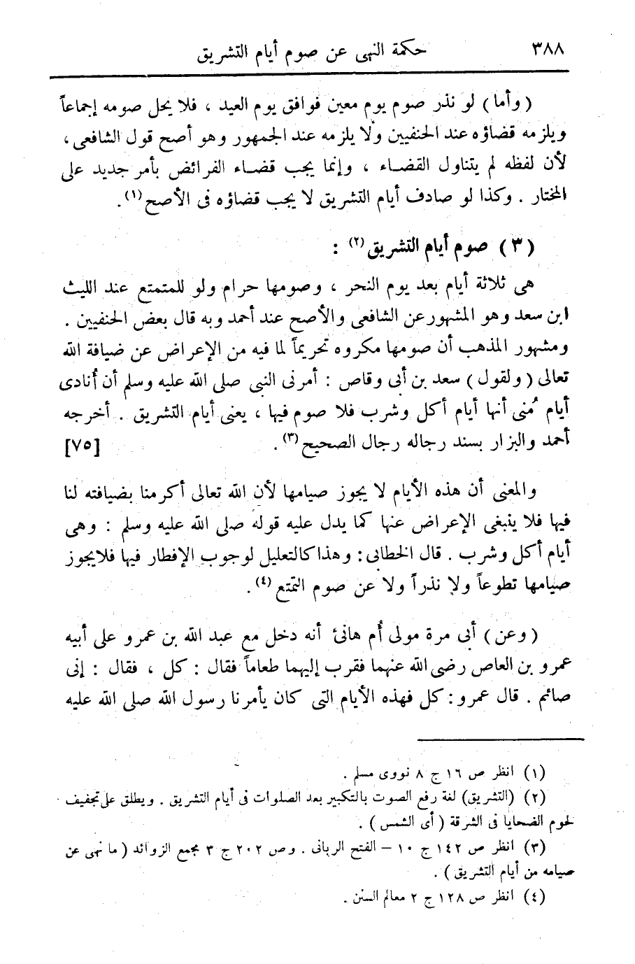 (¬3) انظر ص 142 ج 10 - الفتح الرباني. وص 202 ج 3 مجمع الزوائد (ما نهى عن صيامه من أيام التشريق).