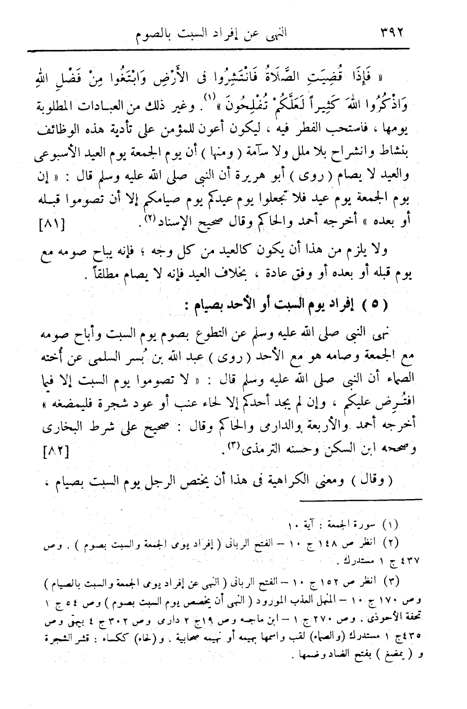 (¬2) انظر ص 148 ج 10 - الفتح الرباني (إفراد يومي الجمعة والسبت يصوم). وص 437 ج 1 مستدرك.