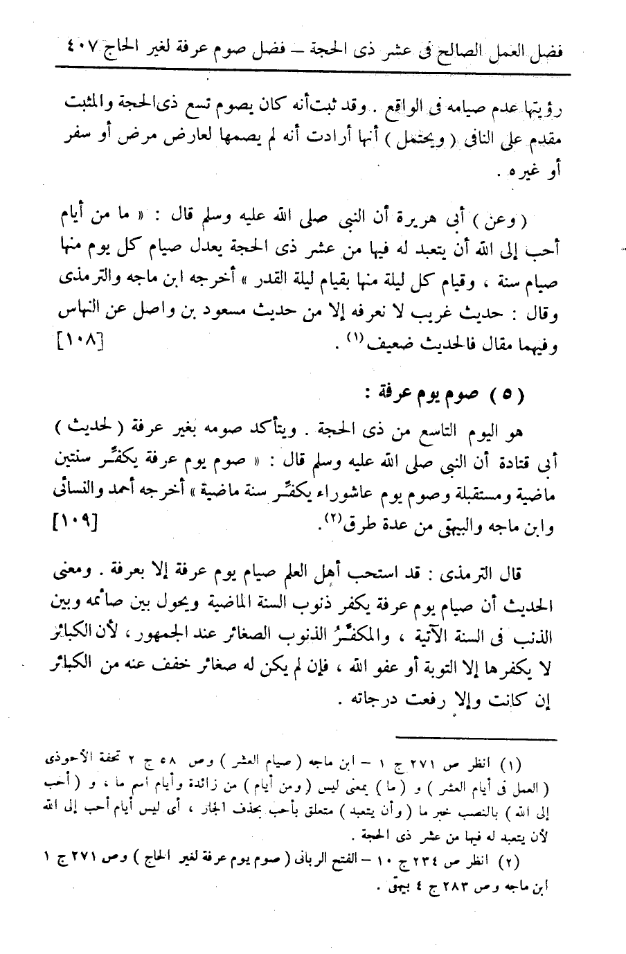 (¬2) انظر ص 234 ج 10 الفتح الرباني (صوم يوم عرفة لغير الحاج) وص 271 ج 1 - ابن ماجه وص 283 ج 4 بيهقي.