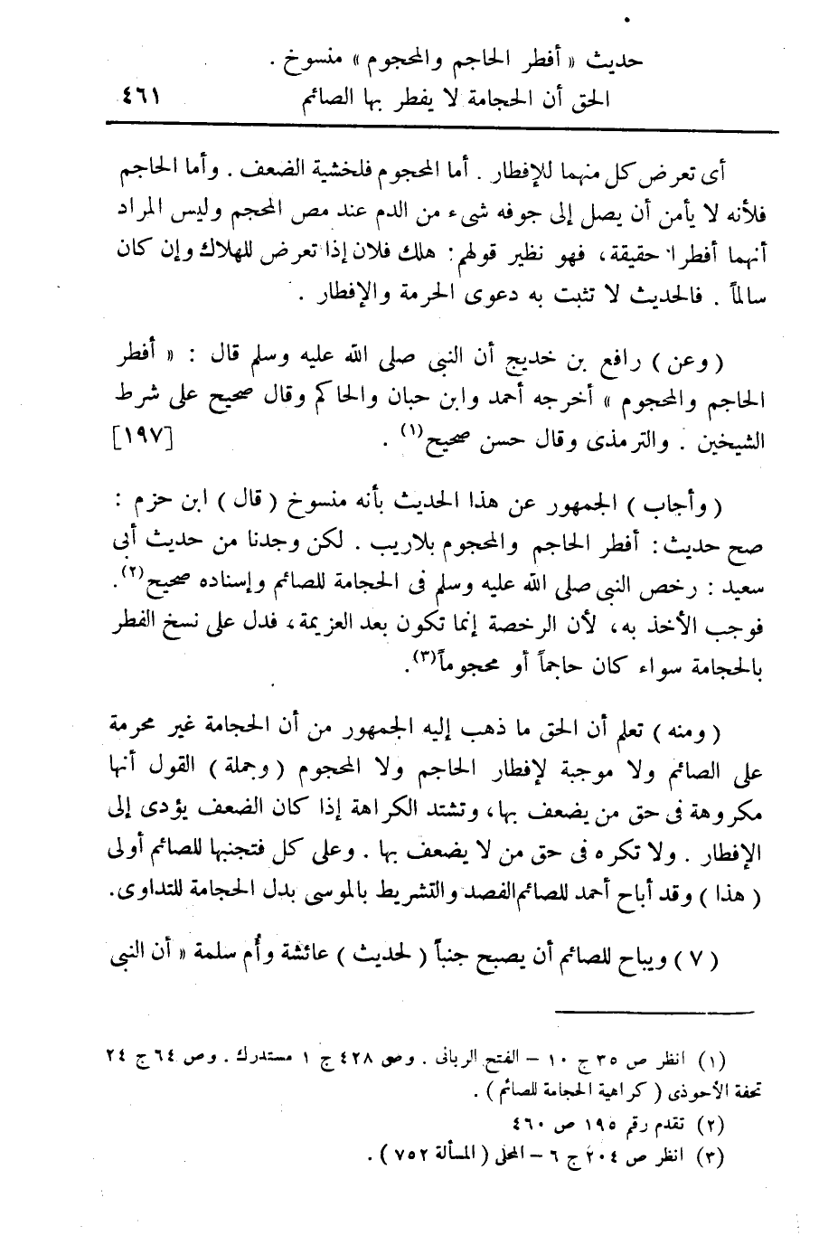 (¬1) انظر ص 35 ج 10 - الفتح الرباني. وص 428 ج 1 مستدرك. وص 64 ج 24 تحفة الأحوذي (كراهية الحجامة للصائم).