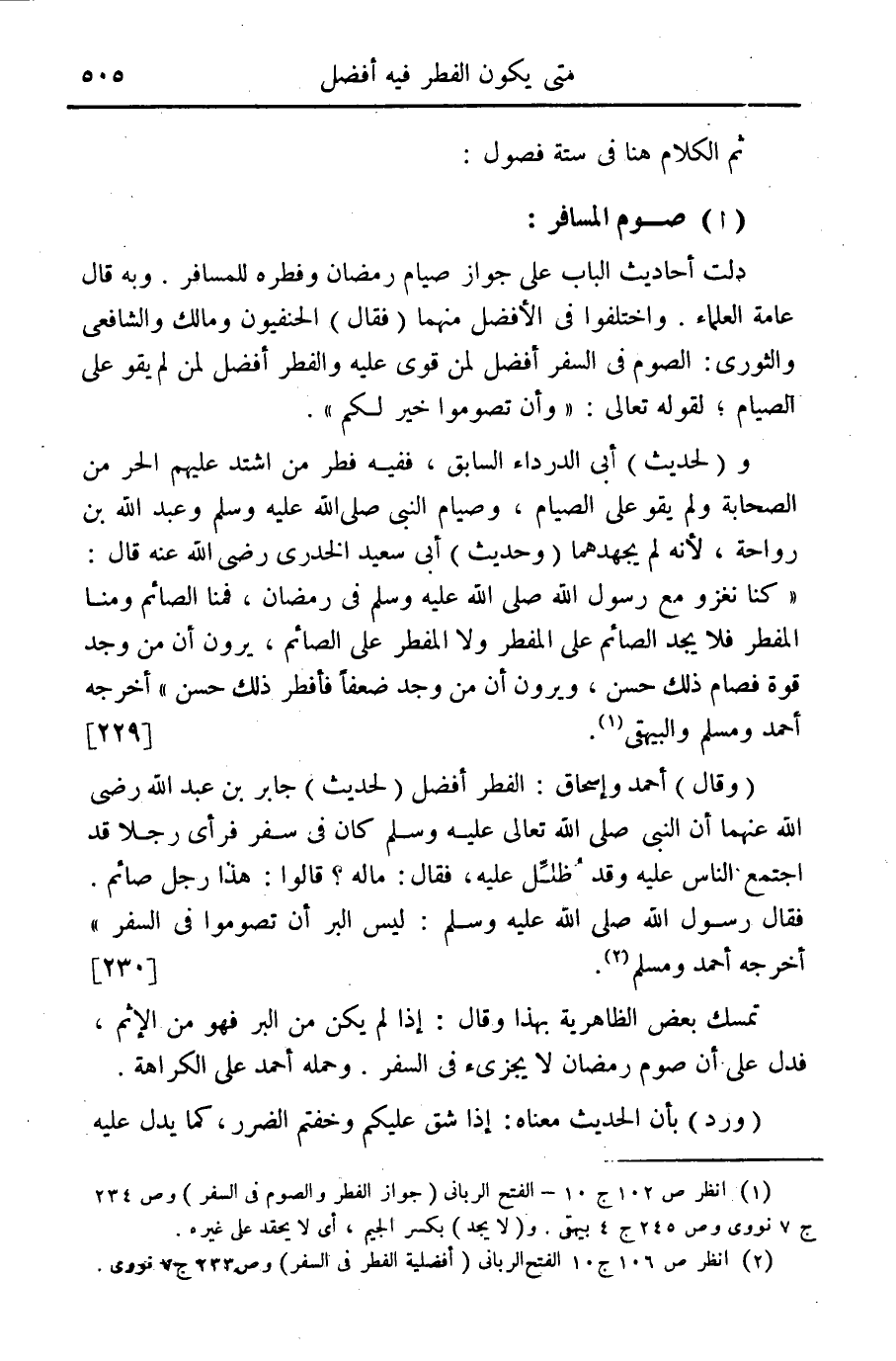 (¬2) انظر ص 106 ج 10 الفتح الرباني (أفضلية الفطر في السفر) وص 233 ج 7 نووي.