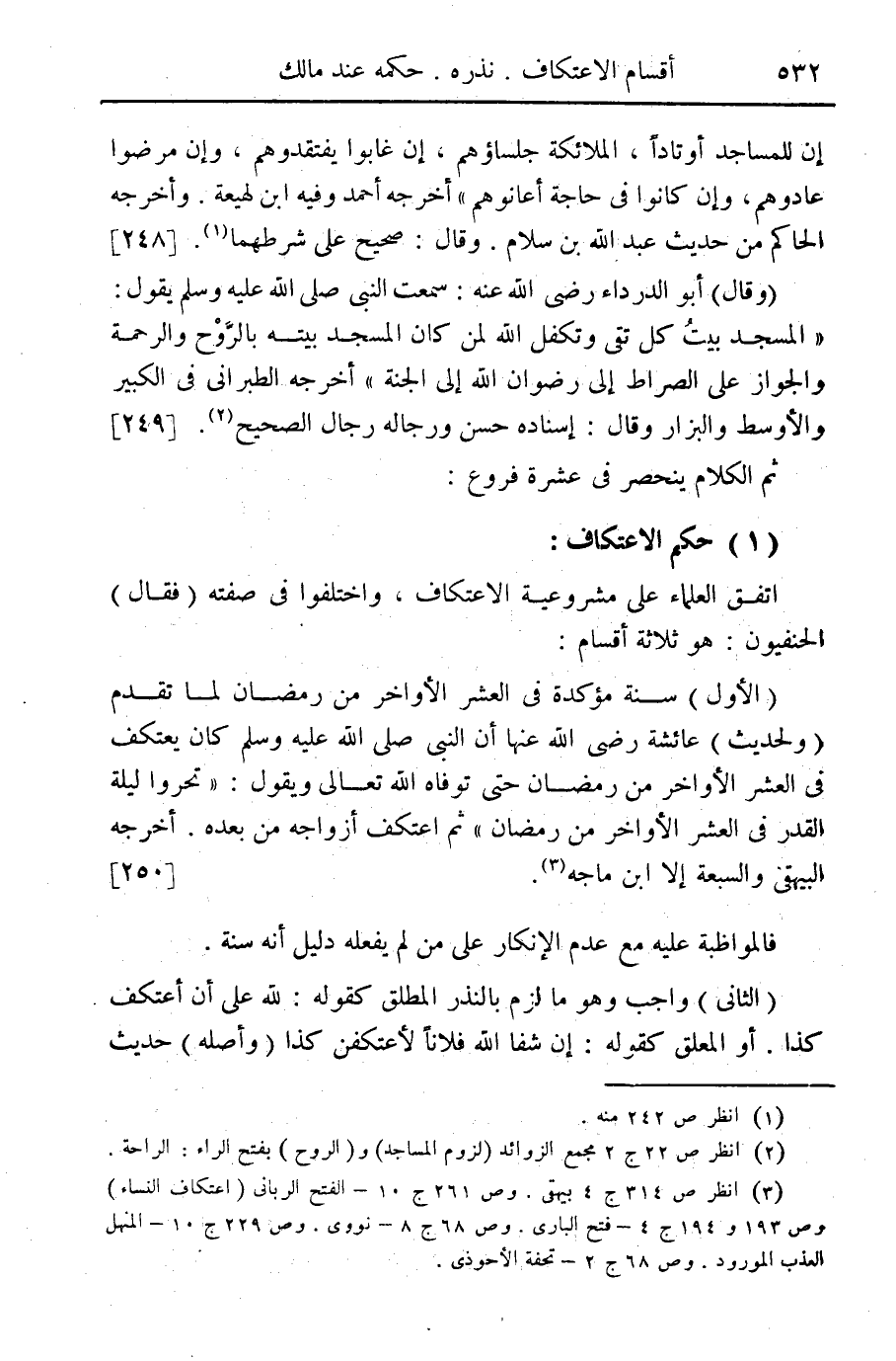 (¬3) انظر ص 314 ج 4 بيهقي. وص 261 ج 10 - الفتح الرباني (اعتكاف النساء) وص 193 و 194 ج 4 فتح الباري. وص 68 ج 8 نووي. وص 229 ج 10 - المنهل العذب المورود. وص 68 ج 2 تحفة الأحوذي.