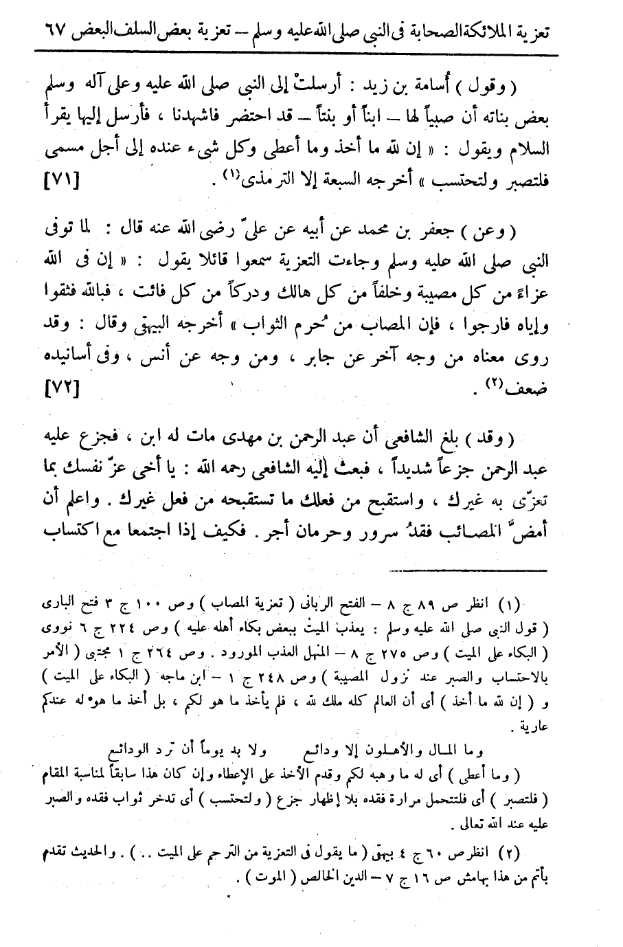 (¬2) انظر ص 60 ج 4 بيهقي (ما يقول في التعزية من الترحم على الميت .. ). والحديث تقدم بأتم من هذا بهامش ص 16 ج 7 - الدين الخالص (الموت).
