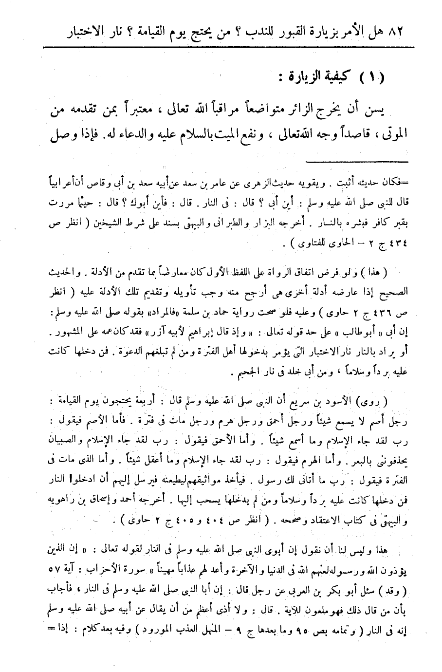 هذا وليس لنا أن نقول إن أبوي النبي صلى الله عليه وسلم في النار لقوله تعالى: "إن الذين يؤذون الله ورسوله لعنهم الله في الدنيا والآخرة وأعد لهم عذابا مهينا" سورة الأحزاب: آية 57 (وقد) سئل أبو بكر بن العربي عن رجل قال: إن أبا النبي صلى الله عليه وسلم في النار، فأجاب بأن من قال ذلك فهو ملعون للآية. قال: ولا أذى أعظم من أن يقال عن أبيه صلى الله عليه وسلم إنه في النار (وتمامه بص 95 وما بعدها ج 9 - المنهل العذب المورود) وفيه بعد كلام: إذا =