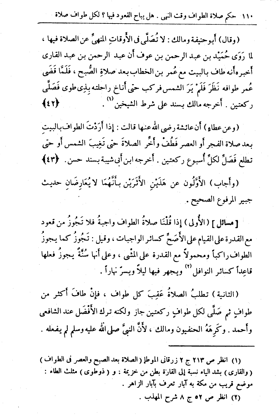 (¬1) ص 213 ج 2 زرقانى الموطإ (الصلاة بعد الصبح والعصر في الطواف). (والقاري) بشد الياء نسبة إلى القارة بطن من خزيمة. و (ذو طوي) مثلث الطاء موضع قريب من مكة به آبار تعريف بآبار الزاهر.