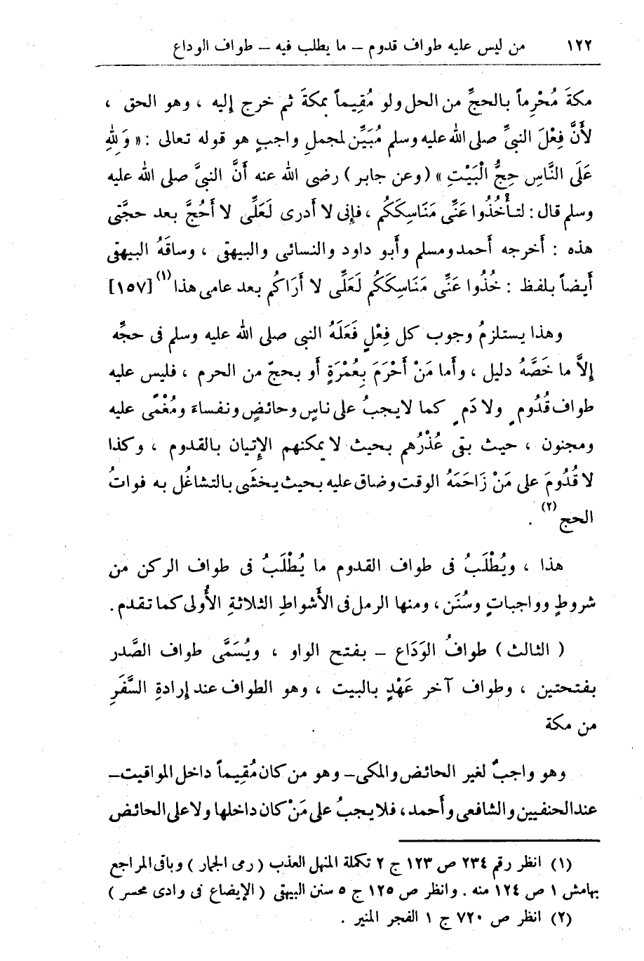 مكة محرماً بالحج من الحل ولو مقيما بمكة ثم خرج إليه. وهو الحق , لأن فعل النبي صلى الله عليه وسلم مبين لمجمل واجب هو قوله تعالى: ولله على الناس حج البيت «وعن جابر» رضي الله عنه أن النبي صلى الله عليه وسلم قال: لتأخذوا مناسككم. فأني لا أدري لعلى لا أحج بعد حجتي هذه. أخرجه أحمد ومسلم وأبو داود والنسائي والبيهقي. وساقه البيهقي أيضاً بلفظ: خذوا عني مناسككم لعلى لا أراكم بعد عامي هذا (¬1). {157}