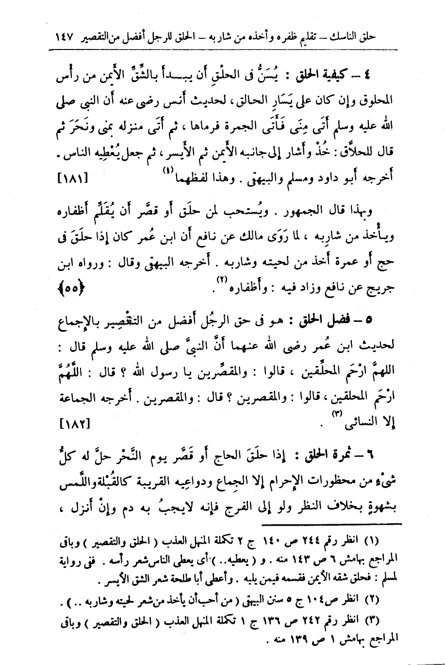 (¬3) انظر رقم 242 ص 136 ج 1 تكملة المنهل العذب (الحلق والتقصير) وباقي المراجع بهامش 1 ص 139 منه.