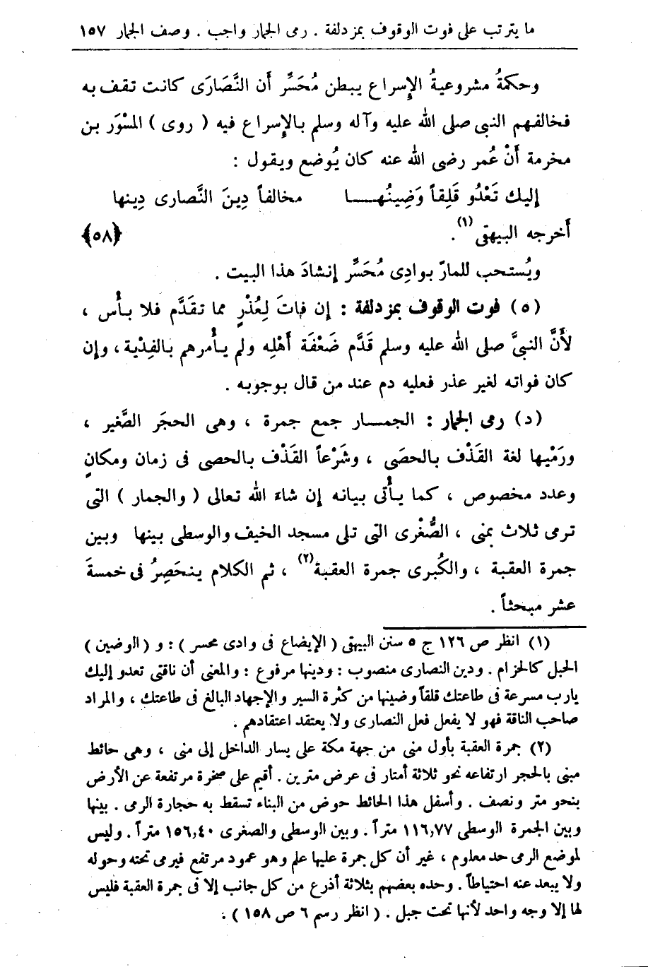 (¬1) ص 126 ج 5 سنن البيهقي (الإيضاع في وادي محسر). و (الوضين الحبل كالحزام. ودين النصارى منصوب. ودينها مرفوع. والمعني أنا ناقتي تعدو إليك يا رب مسرعة في طاعتك قلقا وضينها من كثرة السير والإجهاد البالغ في طاعتك والمراد صاحب الناقة فهو لا يفعل فعلا لنصارى ولا يعتقد اعتقادهم.)