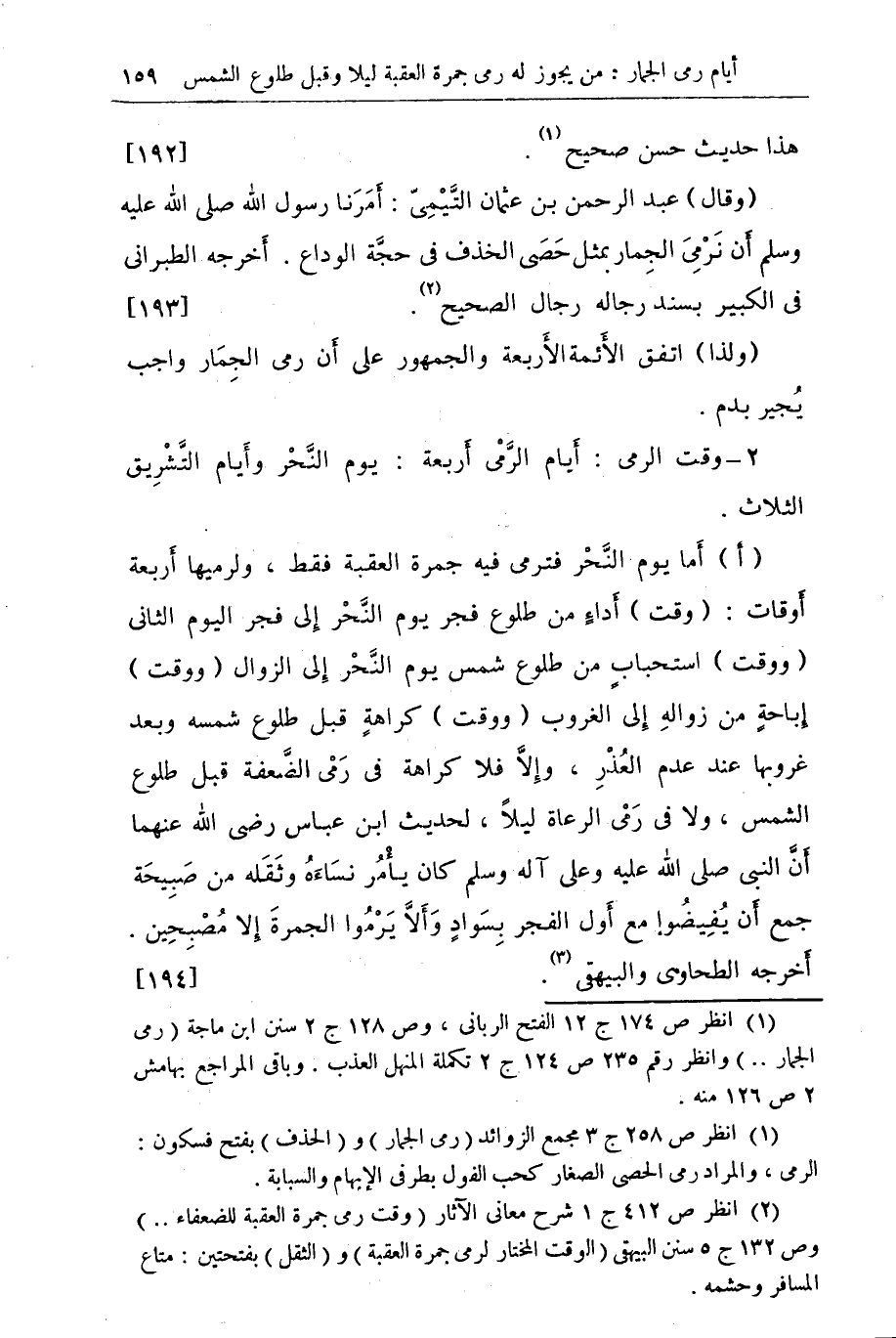 (¬1) ص 174 ج 12 - الفتح الرباني وص 128 ج 2 سنن ابن ماجة (رمي الجمار .. ) وانظر رقم 235 ص 124 ج 2 تكملة المنهل العذب. وباقي المراجع بهامش 2 ص 126 منه.