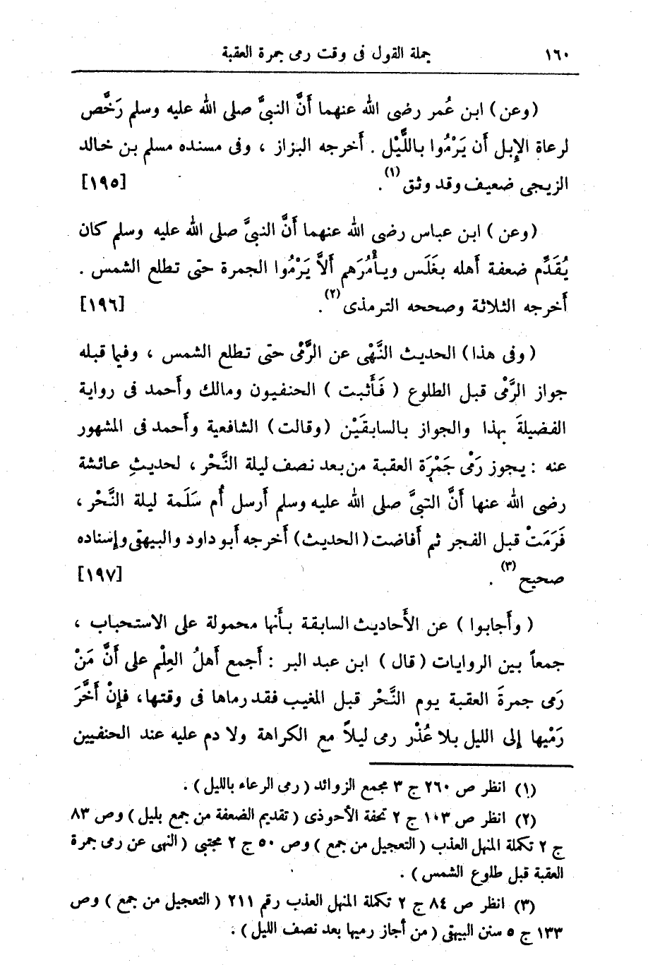(¬3) ص 84 ج 2 تكملة المنهل العذب رقم 211 (التعجيل من جمع) وص 133 ج 5 سنن البيهقي (من أجاز رميها بعد نصف الليل).