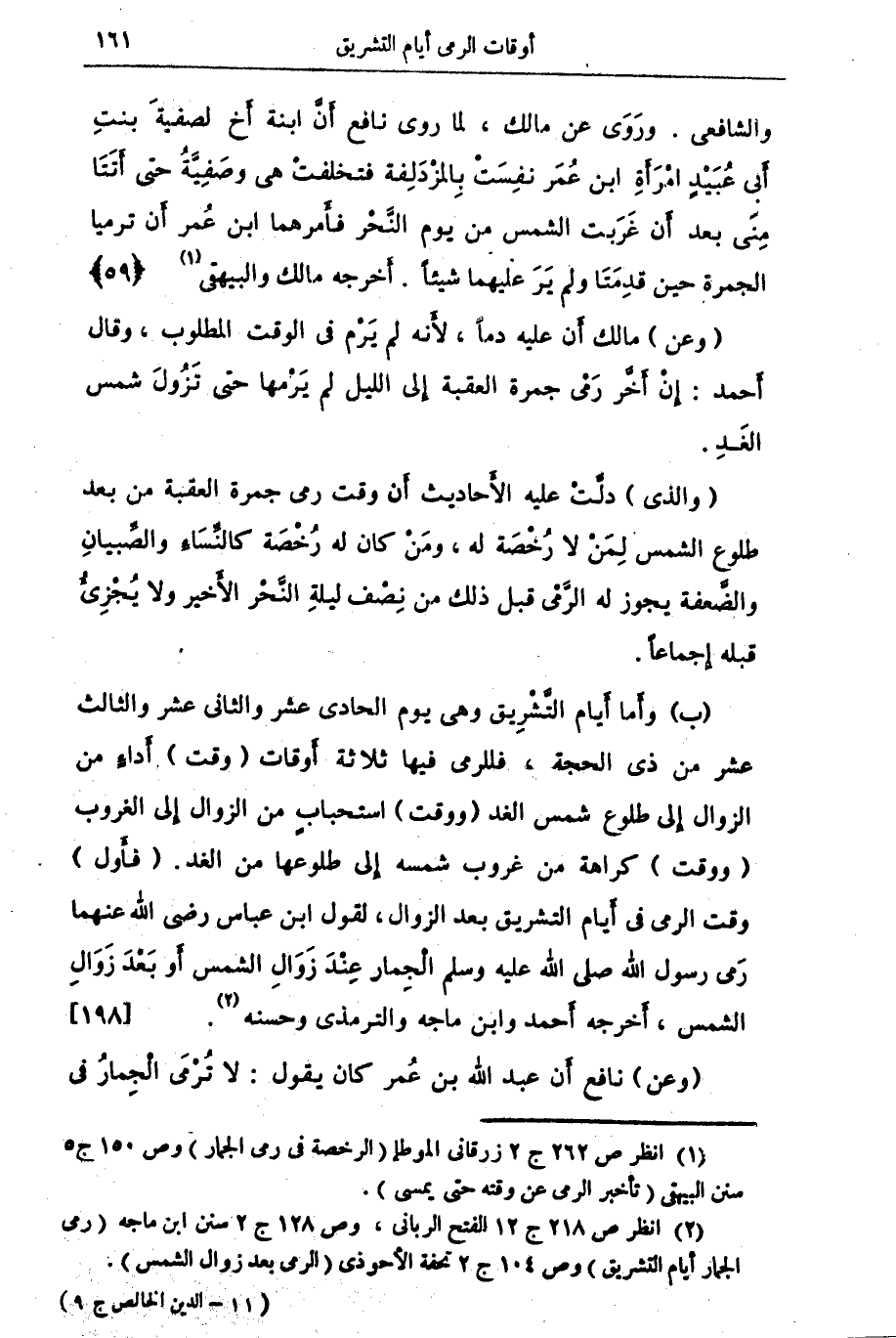 (¬1) ص 262 ج 2 زرقاني الموطإ (الرخصة في رمي الجمار) وص 150 ج 5 سنن البيهقي (تأخير الرمي عن وقته حتى يمسي).