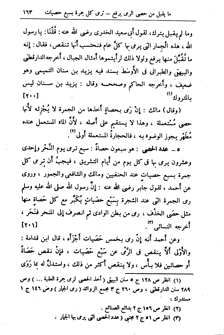 (¬1) ص 128 ج 5 سنن البيهقي (أخذ الحصى لرمي جمرة العقبة) وص 289 سنن الدارقطني. وص 260 ج 3 مجمع الزوائد (رمي الجمار) وص 146 ج 1 مستدرك.