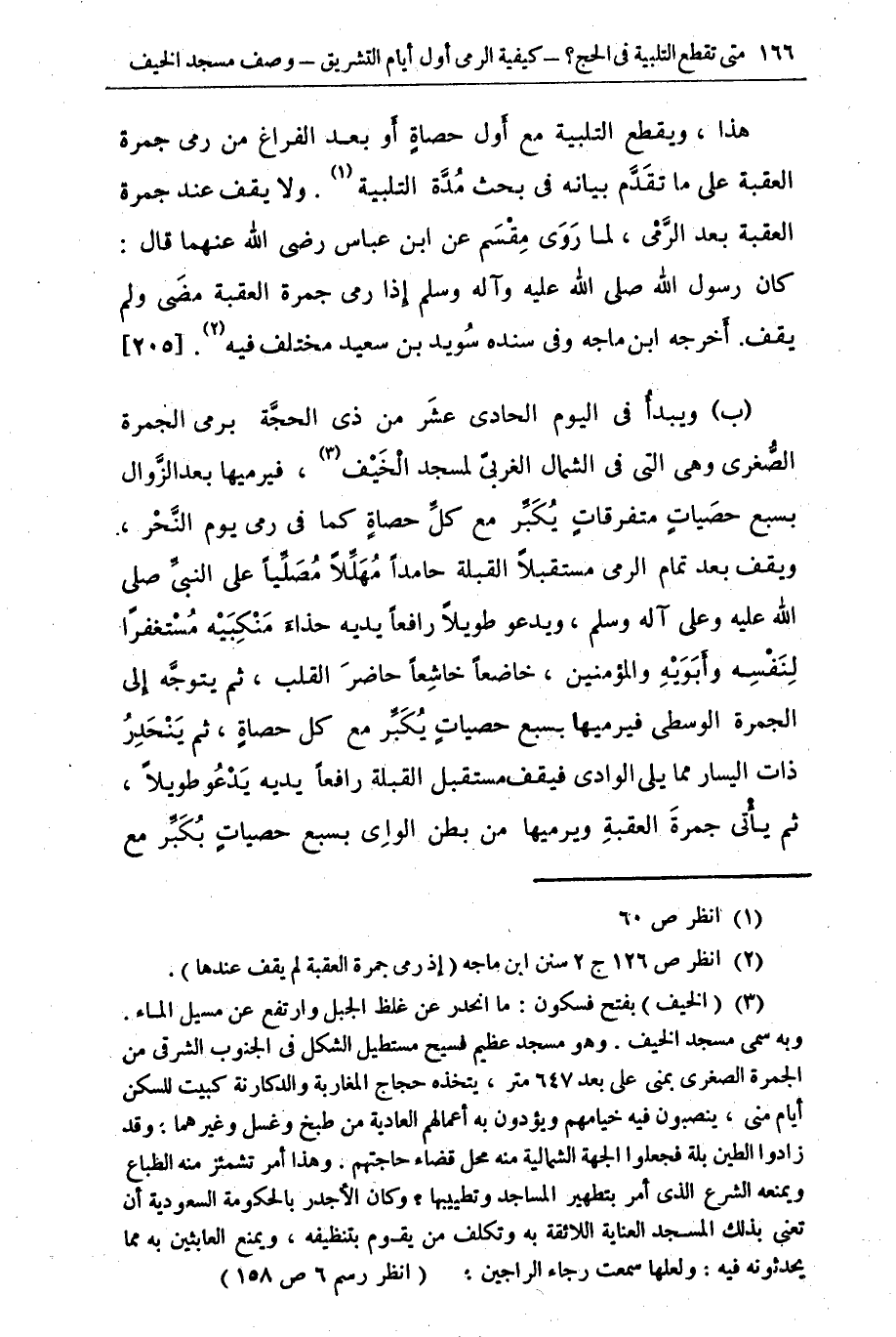 (¬3) (الخيف) بفتح فسكون ما انحدر عن غلظ الجبل وارتفع عن مسيل الماء فيه. وبه سمي مسجد الخيف. وهو مسجد عظيم فيسح مستطيل الشكل في الجنوب الشرقي من الجمرة الصغرى. بمنى على يعد 647 متر يتخذه حجاج المغاربة والدكارنة كبيت للسكن أيام منى , ينصبون فيه خيامهم ويؤدون به أعمالهم العادية من طبخ وغسل وغيرهما. وقد زادوا الطين بلة فجعلوا الجهة لشمالية منه محل قضاء حاجتهم. وهذا أمر تشمئز منه الطباع ويمنعه الشرع الذي أمر بتطهير المساجد وتطييبها. وكان الأجدر بالحكومة السعودية أن تعني بذلك = =المسجد العناية اللائقة به وتكلف من يقوم بتنظيفه , ويمنع العابثين به مما يحدثونه فيه. ولعلها سمعت رجاء الراجين. [انظر رسيم 6 ص 158].