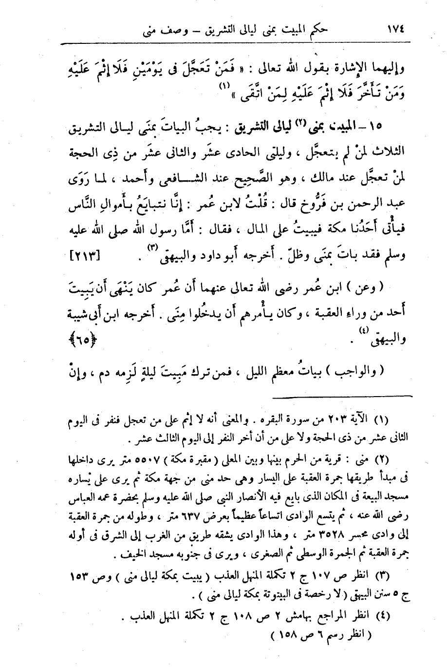 (¬3) ص 107 ج 2 تكملة المنهل العذب (يبيت بمكة ليالي منى) وص 153 ج 5 سنن البيهقي (لا رخصة في البيتوتة بمكة ليالي منى).